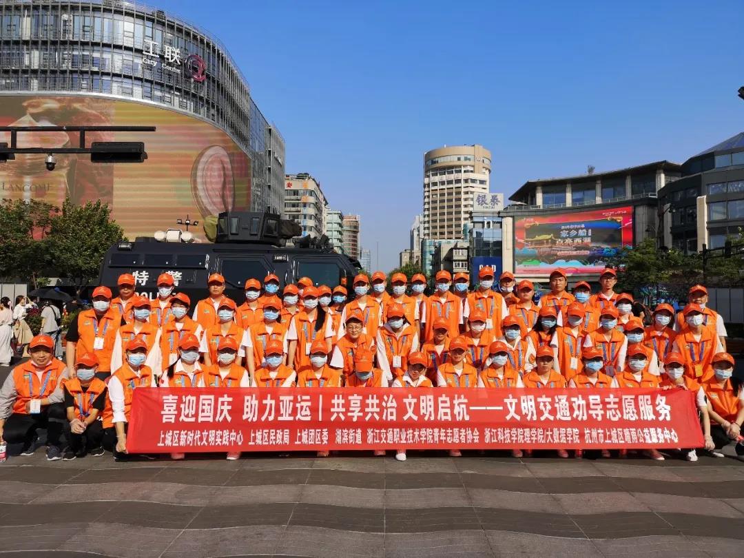 志愿者响应上城团区委、上城区新时代文明实践中心、上城区民政局、湖滨街道、阿里巴巴3小时公益、浙江交通职业技术学院青年志愿者协会、杭州市上城区晴雨公益服务中心等社会各界力量的志愿号召,以共计八万逾次的志愿服务全力护航国庆期间的安全秩序,用一张张温馨的笑脸,一句句恳切的叮嘱,为游客延续这道靓丽风景线。