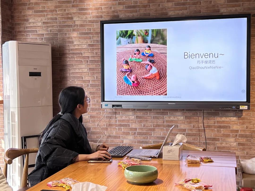 之后陆文婷介绍了粘土的来源,分享了粘土的减压功效,大家观看了介绍的视频,体会到了艺术背后情感、精神的寄托。艺术专业的同学作为“外援”也为大家讲解了粘土捏制的工艺,为大家快乐地“捏捏捏”保驾护航。