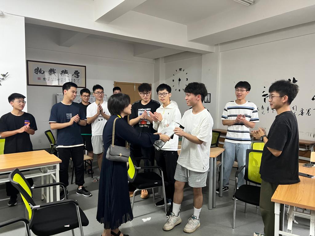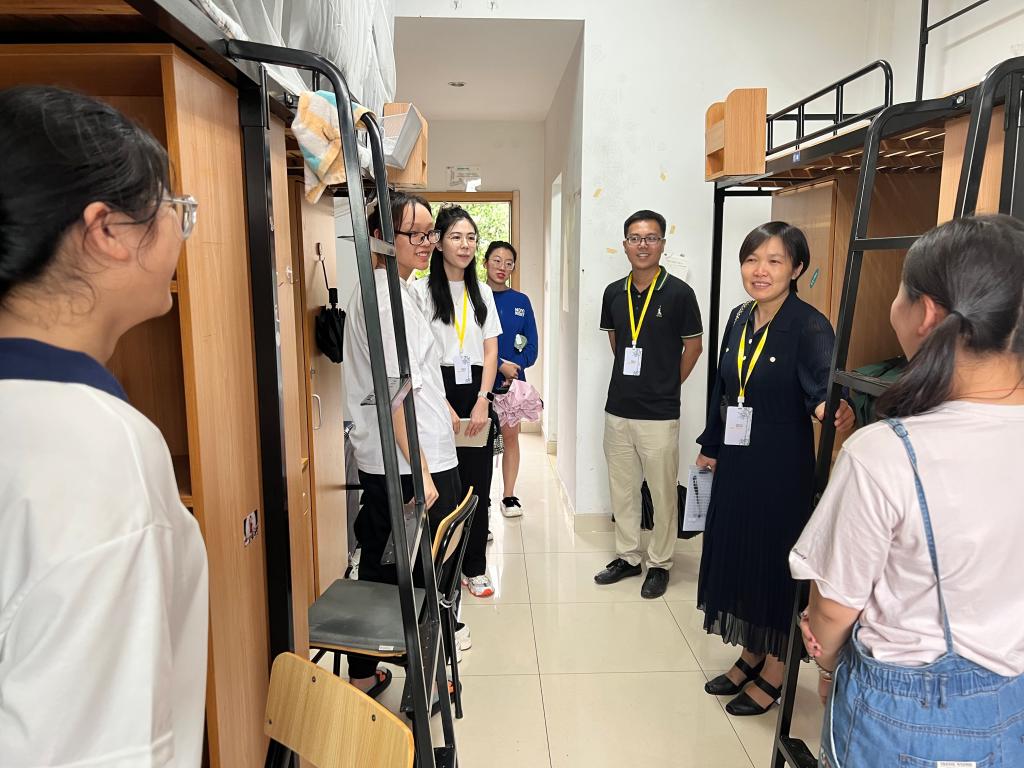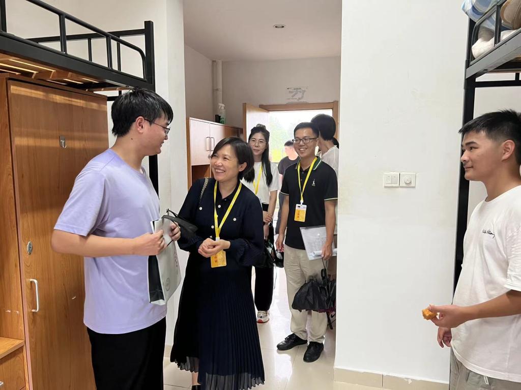 党委书记张掬婴、党委副书记黄奕筱、学工办主任蔡瑞康、新生班主任、助班等一同走访学生宿舍。走访期间,张掬婴书记对新生以往的成绩表示了肯定,并寄予殷切希望,祝愿每位新生都能在今后的学习生活中积极奋进,梦想成真。黄奕筱副书记提醒大家快速调整好状态,掌握好新的学习节奏,找到适合自己的学习方法。学院了解到当天有新生过生日,特意准备了学习文具礼包,希望新生能够在新的环境秉承“明理笃学,慎修博用”的院训,保持对科学的好奇心,不断探索,攻坚克难,通过四年的积累和沉淀,成为更好的自己。随后,为了让新生们更快地融入班集体,班主任们组织召开班会。会上,班主任们细心讲解开学须知,热情介绍专业前景和分享自身经历。