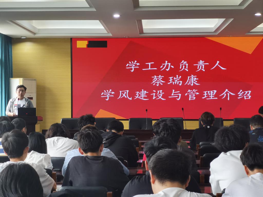 召开学风建设大会。本次会议由学院学工办主任蔡瑞康主持,教务班主任花彩霞、中法专业教学秘书吴哲安讲解,全体学业预警学生参加。