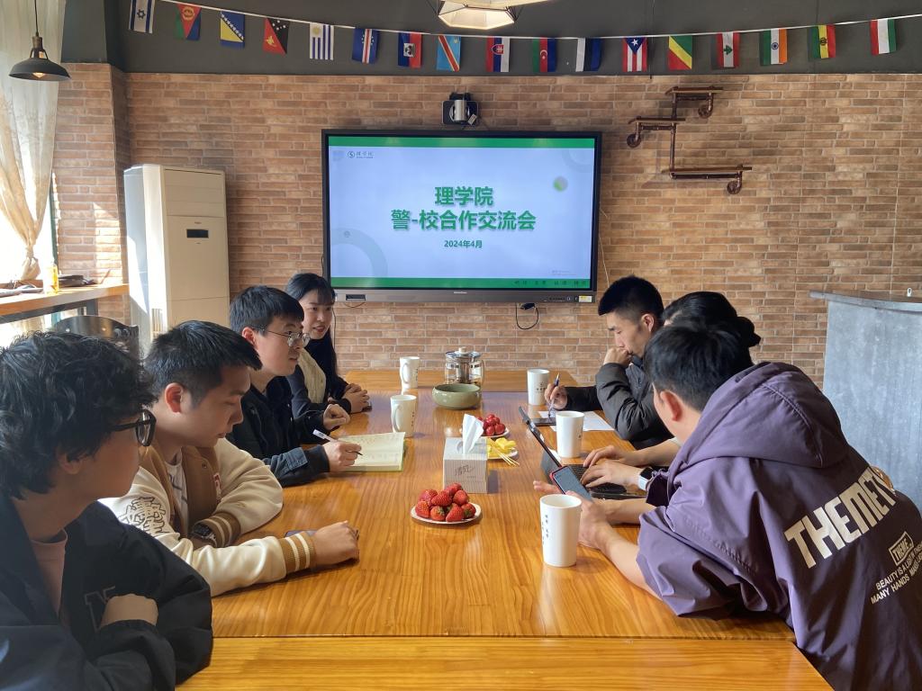 学院安全工作分管辅导员来雪琦介绍了学生基本情况和学院安全教育工作开展情况,并结合学生管理中的具体问题和警官们进行了充分的交流和研讨。劳一帆警官对学院的学生安全工作表示了肯定,并指出警校双方应加强在安全教育上的合作,多举措做好学生的安全教育工作。