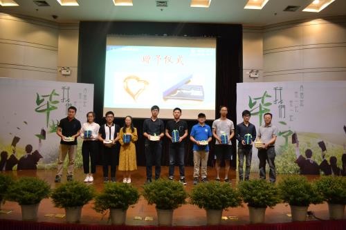 毕业典礼上,学院为2017届省优、校优毕业生、考研出国留学学生及校友联络员颁发了荣誉证书、纪念品和聘书,还向毕业生们赠送了学院定制的毕业纪念品。毕业生们则自发地向学院捐出自己闲置的书籍,希望为母院成就大学梦贡献一份力量。