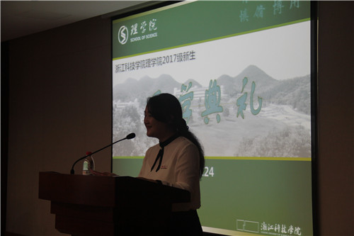 典礼上,苗红亚为新生送上寄语。她希望新生尽早适应大学生活,通过学院平台发挥理学优势,明确自己的学习方向,学会自我学习、自我管理。