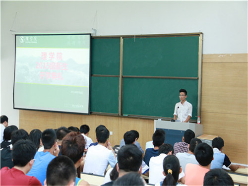 会上,院长陶祥兴发表了热情洋溢的致辞,他向刚跨入大学校园的新生们表示热烈祝贺,并代表学院全体教职工欢迎新生加入理学这个大家庭;也从多角度阐释大学与中学的区别,希望新生们尽快改变中学原有的学习生活模式,以适应大学全新的生活,并希望同学们在四年的学习中要树立自信,不断提升自己的学习能力、不断完善学习方法,制定好学习计划努力前行,把自己培养成为“厚基础、强应用、国际化”的有用之才。两位系主任、老生代表、新生代表也相继在会上精彩发言。院党委书记苗红亚做典礼总结,她认为,进入大学不是结束而是开始,除了学知识,更要学做人。她希望新生们要明确学习目标,学会自我管理,学会自主学习,努力做到校党委提出的“七个一”。