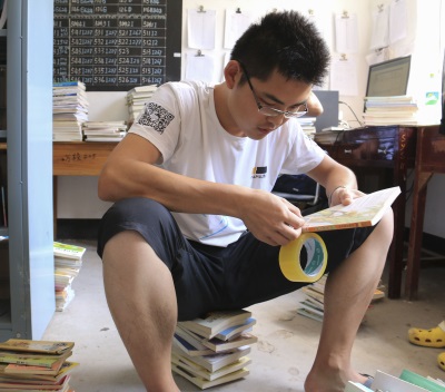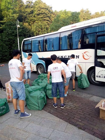 要把这么多图书搬运到这个偏僻的山区真不是个容易的事,出发前,队员们已将这些图书大致分类后打包好,装了十几个大袋子。由于我们租用的大巴无法通过狭窄的山路只能到达青田县城,之后前往万阜乡就要我们自己想办法。万阜乡政府得知了我们这一困难之后,为表达对我们的谢意,决定派车来帮助我们搬运这些书。一番长途跋涉,终于将书籍顺利运达青田万阜乡!