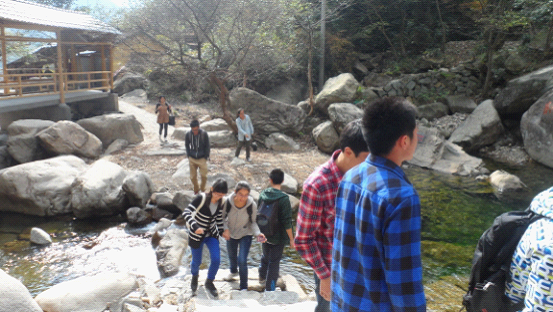 天目山大峡谷内,有许多的岩石。同学们,特别是男同学们对攀爬岩石乐表现出浓厚的兴趣,着实让平时不常运动的同学们大汗淋漓了一回!