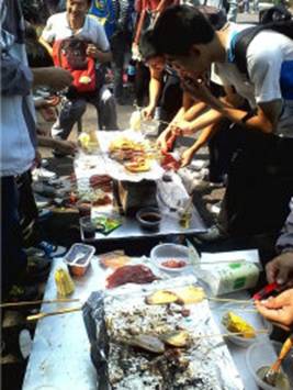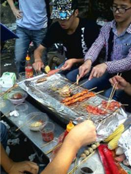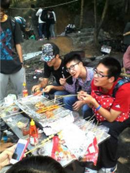 第二天,终于迎来了期待已久的烧烤,晴朗的天气,太阳也显得温暖,微风吹来,也不似秋风瑟瑟。一开始,大家就将烧烤架团团围住,纷纷展示各自的烧烤功力,在食物面前你争我抢,像一群不懂事的孩子,然而,却让我们体会到班级的活力与温暖。