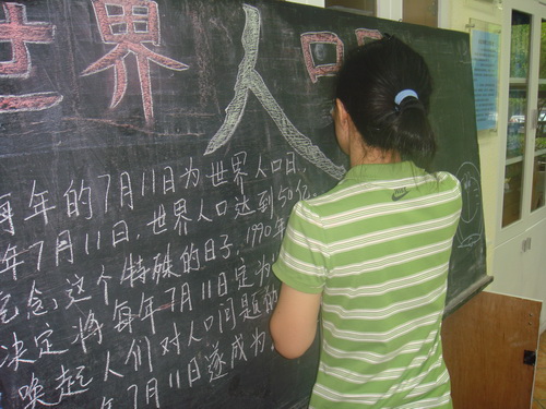 7月15日,队员们出了11份黑板报,有以“讲究卫生 关注健康”为主题的,有以“创建美好家园 从一点一滴做起”为主题的等等,这是一项十分考验人耐心的任务,但大家都出色的完成了。