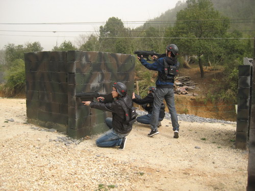当我们穿上服装、戴上头盔、抗起枪后,就像是真正的军人一样,看上去威风凛凛,大家都是第一次这样的打扮,感觉既新鲜又兴奋。在听完教练员的解说后,游戏也正式拉开帷幕。我们与建工学院的同学开始对战,双方互打攻防战,两队轮流做攻方或者守方,打得不亦乐乎。跌、爬、滚、打......杀过了,玩过了,笑过了,喊过了,发泄过了之后,同学们之间的距离又亲密了许多。在彼此心里也悄悄滋生了一份特殊的“革命友谊”。毕竟是“枪林弹雨”中一起出生入死过的战友啊。