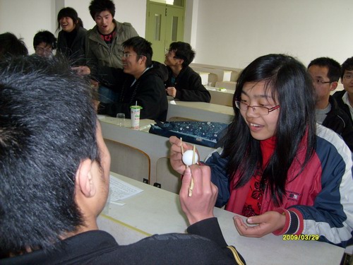 本次我班主题班会就以学习为目的,以游戏为辅助,让大家更快乐的学习,游戏。游戏分组进行,输的队伍要出节目,当然是以英语的形式表演,有唱英文歌的,有说笑话的,有朗诵的.......就这样在欢声笑语中,促进了英语的学习,又获得了游戏的快乐。除此之外,游戏以组队的形式,大大增加了同学们的默契,大大增强了班级的凝聚力。
