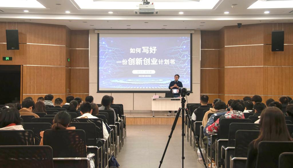 蔡老师在介绍和分析了我校往届学生参赛获奖情况后指出,写好一份创新创业计划书,首先要充分了解市场现状和行业背景,其次在创业计划书中要讲清楚自己项目的研究方向和创新内容,并要从“发现痛点、用户研究、竞品分析、商业模式、产品研发、项目团队、财务预测与融资计划”等方面作详细介绍。