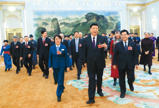 2018年3月5日,中共中央总书记、国家主席、中央军委主席习近平参加十三届全国人大一次会议内蒙古代表团的审议。 新华社记者 谢环驰/摄