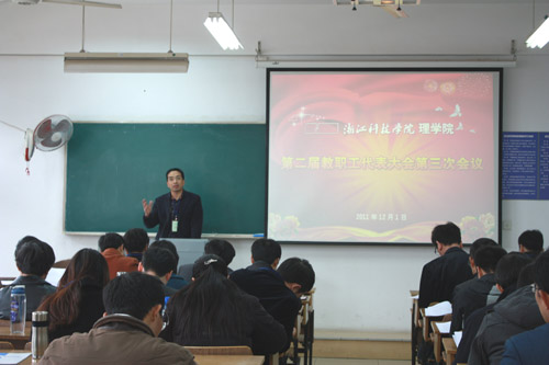 二届三次双代会在A2-205召开。分管校领导郑友取副校长出席会议,院教代会代表参加会议,不是代表的教授列席了会议。会议由分工会主席胡月主持。