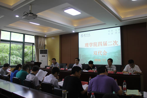 第四届“双代会”第二次会议在闻理园A4-214会议室举行。会议分别由分工会主席胡月、学院党委副书记王杨主持。35位教代会正式代表和4位特邀代表参加会议。