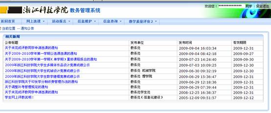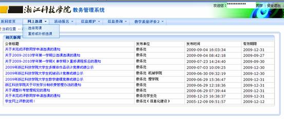 2、选择学生(默认),用户名称为:学生学号,用户口令为自己设定的密码,(如有遗忘请到所在学院教务员处查询,默认为学号),登陆系统如下图: