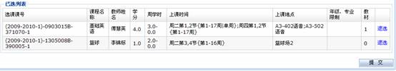 4、选择相应的课程,然后点击提交,点击“退选”可以退选该门课程,如下图所示: