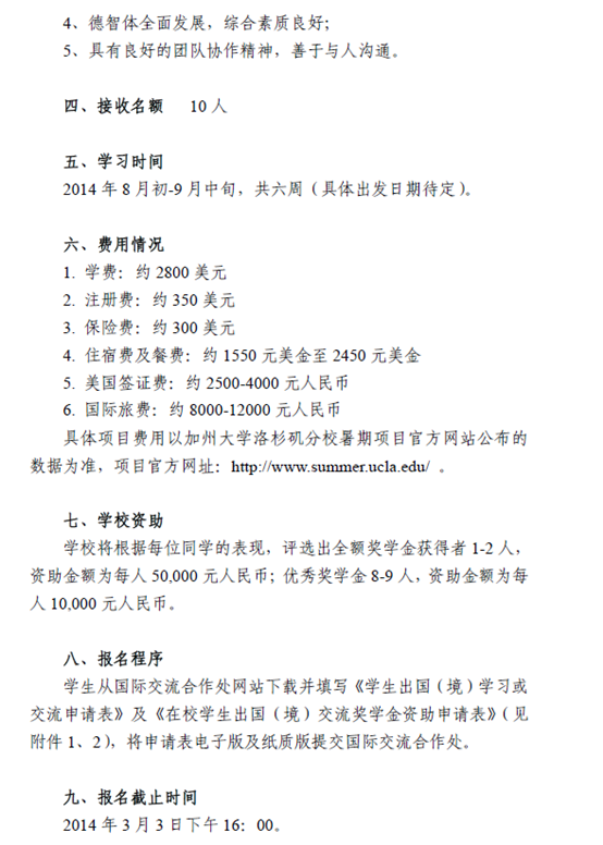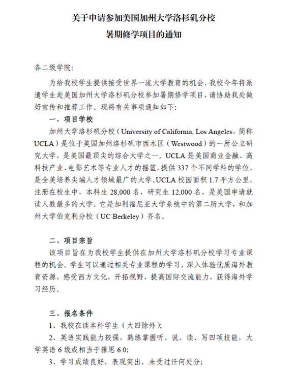 关于申请赴美国加州大学洛杉矶分校参加暑期修学项目的通知