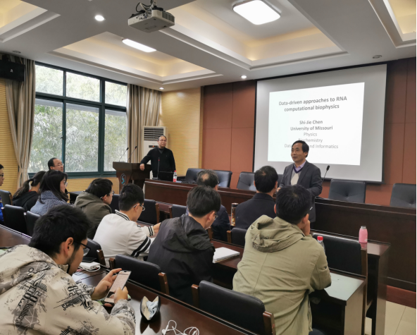做了题为“Data-driven methods for RNA computational biology”的精彩学术报告。陈世杰教授2012年当选为美国物理学会(APS)Fellow,是密苏里大学董事会冠名杰出教授,任职于密苏里大学物理与天文系、生物化学系、数据科学与信息学研究院,一直从事RNA的多领域交叉科学研究。报告由浙江科技学院党委委员、吃瓜黑料网