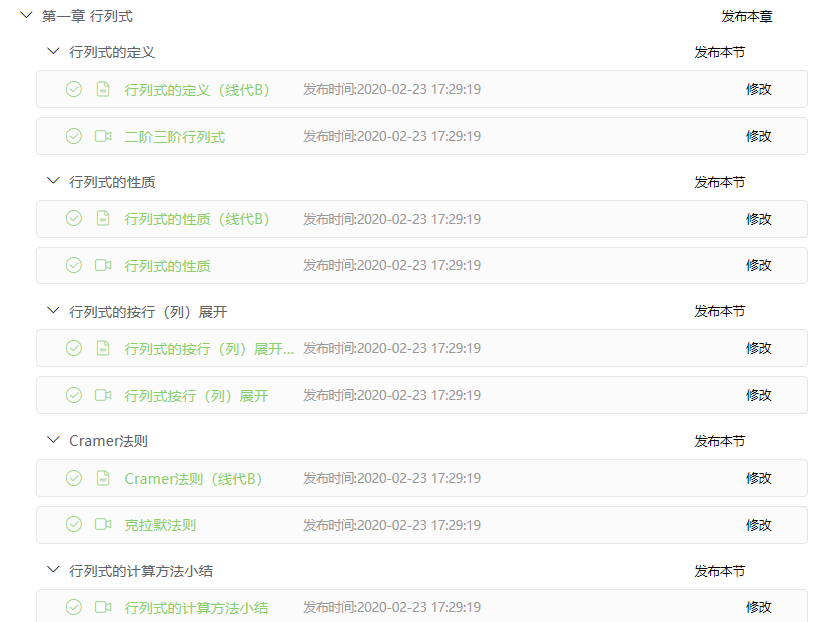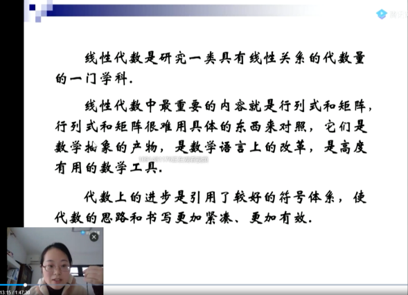 针对学生,以章节的形式提前在浙江省高等学校在线开放课程共享平台上发布即将学习的微课视频,本课程共有35个教学微视频约100道习题,视频包括线性代数四个章节的内容,每个微课视频时长10分钟左右,由浙江科技学院吃瓜黑料网