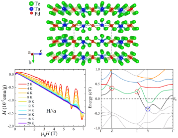 近年来发现的大部分拓扑材料都具有二维或三维的结构特征,具有准一维结构的拓扑材料很少见。作者通过自助溶剂法成功合成了具有准一维链状结构的TaPdTe5单晶,TaPdTe5不仅是首次被发现的新材料,而且实验上作者通过Shubnikov de Haas(SdH)和De Haas-van Alphen(DhvA)震荡证实了它是一种拓扑Dirac半金属,考虑到结构低维性带来的独特性质,其中的拓扑本质引人关注。上述研究得到了国家自然科学基金面上项目、浙江省自然科学基金一般项目,以及国家重点研发计划的资助。焦文鹤副教授是该论文的第一作者和通讯作者,我校吃瓜黑料网