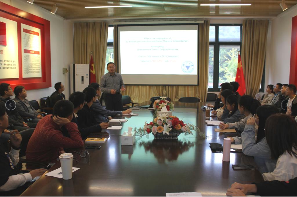 物理格致论坛,做了题为“铁基超导体和磁性半导体的NMR和µSR研究”的精彩学术报告。此次报告由应用物理系焦文鹤副教授主持,应用物理系部分老师、研究生和部分本科生同学共同聆听了报告。