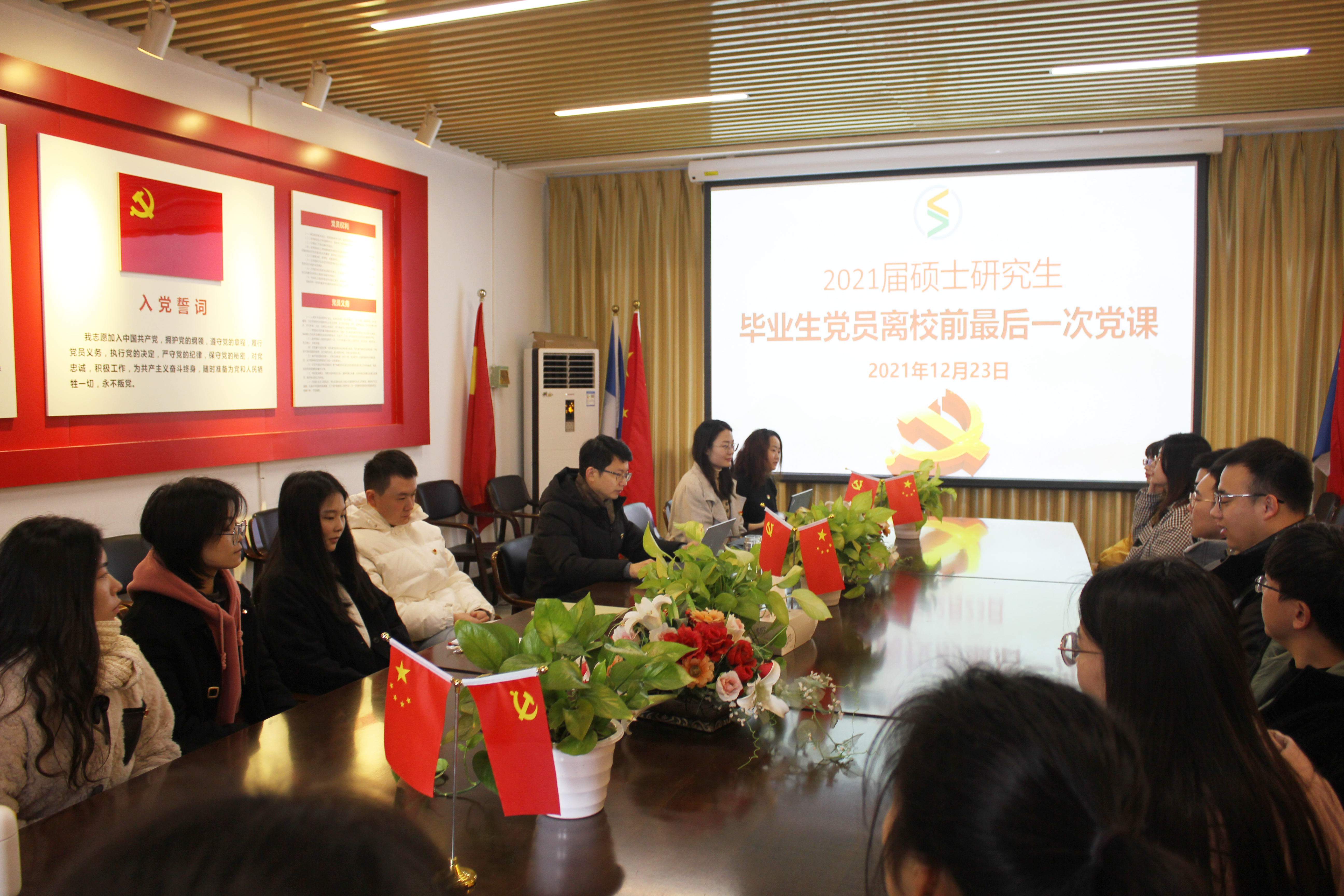 党委组织硕士研究生2021届秋季毕业生党员离校前的最后一次党课。学院党委委员、副院长钱亚冠,组织员和全体2021届硕士研究生秋季毕业生党员出席。