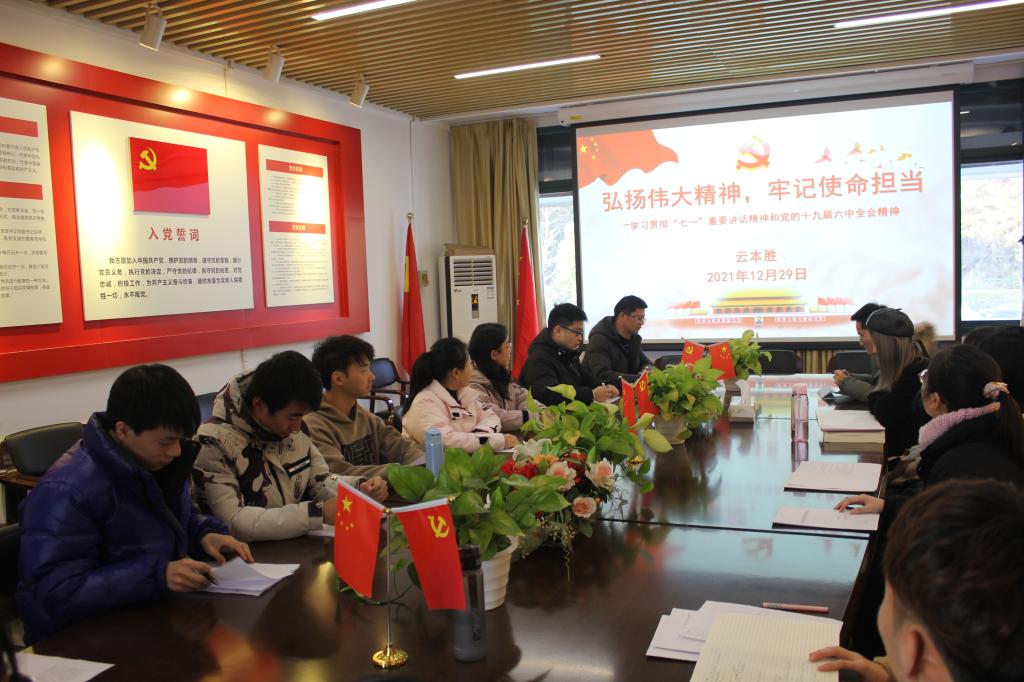 云本胜重点解读了习近平总书记 “七一”重要讲话精神和党的十九届六中全会精神。他强调,全体党员同志要把学习贯彻落实习近平总书记“七一”重要讲话精神和党的十九届六中全会精神作为当前和今后一个时期一项重要政治任务来抓,要与学习贯彻习近平新时代中国特色社会主义思想深入结合,进一步增强思想自觉、政治自觉和行动自觉,弘扬伟大建党精神,汲取奋进前行力量,以优异成绩迎接党的二十大胜利召开。