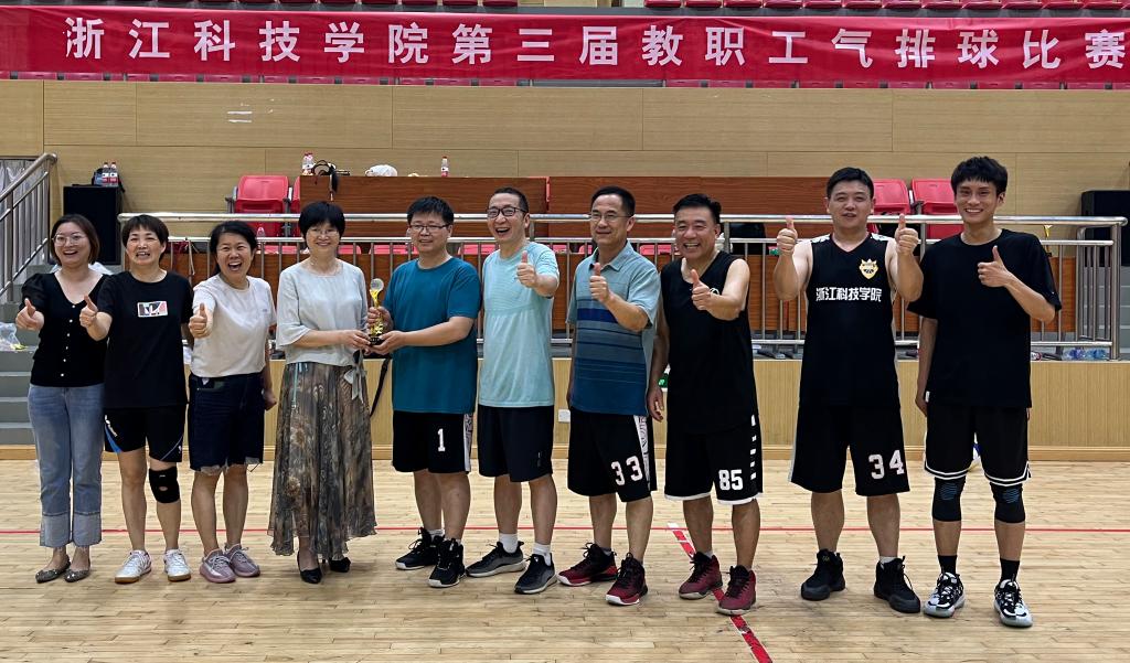 本次比赛共有11支队伍参加。小组赛中,学院教工气排球队以1:2不敌实力强劲的机关队,以小组第二进入复赛。复赛中,学院教工气排球队重新调整心态,以2:0的比分战胜老牌劲旅信息学院进入前三名决赛。前三名决赛采取单循环赛制,学院教工气排球队严阵以待,以2:0的比分战胜卫冕冠军环资学院队与小组赛老对手机关队携手进入冠军争夺战。决赛中,双方实力相当,接连打出精彩的进攻和防守反击,学院教工气排球队群策群力、及时调整战术,通过三局苦战,最终以18:21、23:21和15:13的比分捧起了本届比赛的冠军奖杯。