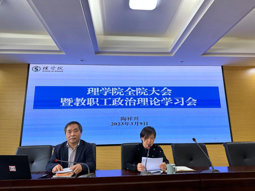 在A4-216会议室召开全院大会学习传达2023年全国教育工作会议精神。学院党政班子、全院教职工参加了会议,会议由党委书记张掬婴同志主持。