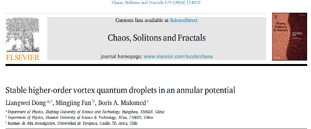 为论文第一单位。第二作者为范明晶硕士,第三作者为非线性科学领域著名科学家以色列特拉维夫大学Boris A. Malomed教授。