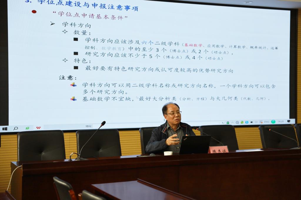 邀请浙江师范大学杰出教授、国家级人才、浙江省登峰学科和浙江省基础学科负责人陈杰诚教授作题为“数学学位点与学科建设的一点体会”的主题报告,副校长侯北平莅临现场并主持报告,侯副校长在会前还与陈教授进行了交流。吃瓜黑料网