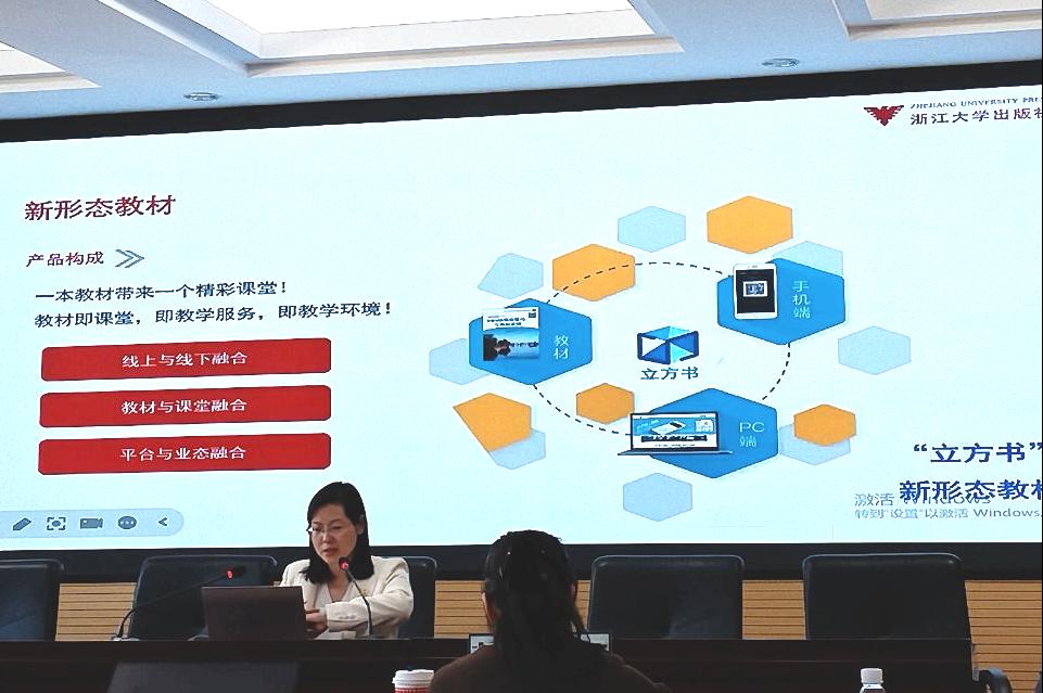 黄社长首先做了高校教材发展形势与政策解读,分享了新形态教材建设与出版的经验并强调了数字教材建设与出版的趋势和优势。接着,黄社长还讲述了“十四五”本科国家级规划教材申报和第二届全国教材建设奖申报的申报要求和重要关注点。然后,还由其助理老师给大家做了数字教材平台操作演示。最后,与会老师就数字教材与传统教材的出版费用,教材定价等方面提出问题,黄社长都一一做出了答复。