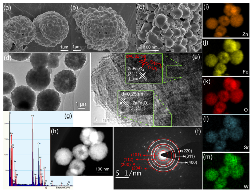 长降解时间、低降解速率和产生的电子-空穴对快速复合是循环稳定性差的主要原因,这也是光芬顿降解的严峻挑战。催化剂可以提供足够的催化表面来阻止电子-空穴对的复合活性物种的无障碍运输。此外,特殊的空心微球结构可以有效加速罗丹明B (RhB)的光催化降解和光芬顿过程。引入SrWO4可以增加不仅可以增加氧空位,还能优化ZnFe2O4的电子结构,从而增强电子传输和RhB 光芬顿过程中的降解。ZnFe2O4/SrWO4 (ZFO/SW) 催化材料的光芬顿可在20 分钟内有效降解99.18 %的RhB染料,且具有显著的循环稳定性。这项工作证明了ZFO/SW作为光催化剂有优异的光催化效率,并证实了开发光芬顿降解材料的最新设计理念。