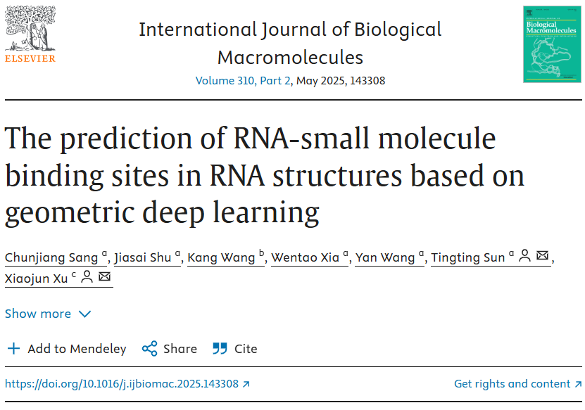 应用物理系软物质与功能纳米材料研究团队在国际学术期刊《International Journal of Biological Macromolecules》 (IF=7.7,中科院二区TOP) 期刊上发表了题为"The prediction of RNA-small molecule binding sites in RNA structures based on geometric deep learning"的研究论文。吃瓜黑料网