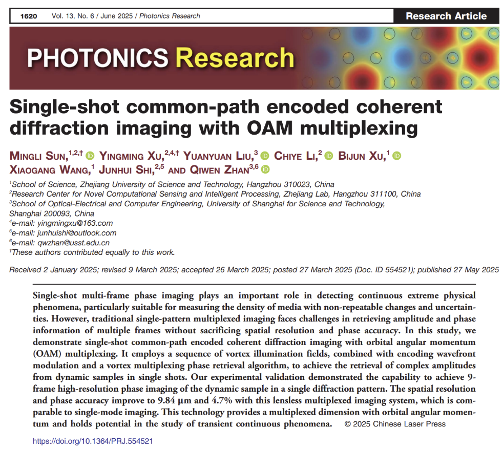 为第一单位,应用物理系孙明丽博士为论文的第一作者,深圳大学徐英明助理教授,之江实验室施钧辉教授和上海理工大学詹其文教授为论文通讯作者。此研究获得国家自然基金项目、浙江省重点研发项目的支持。