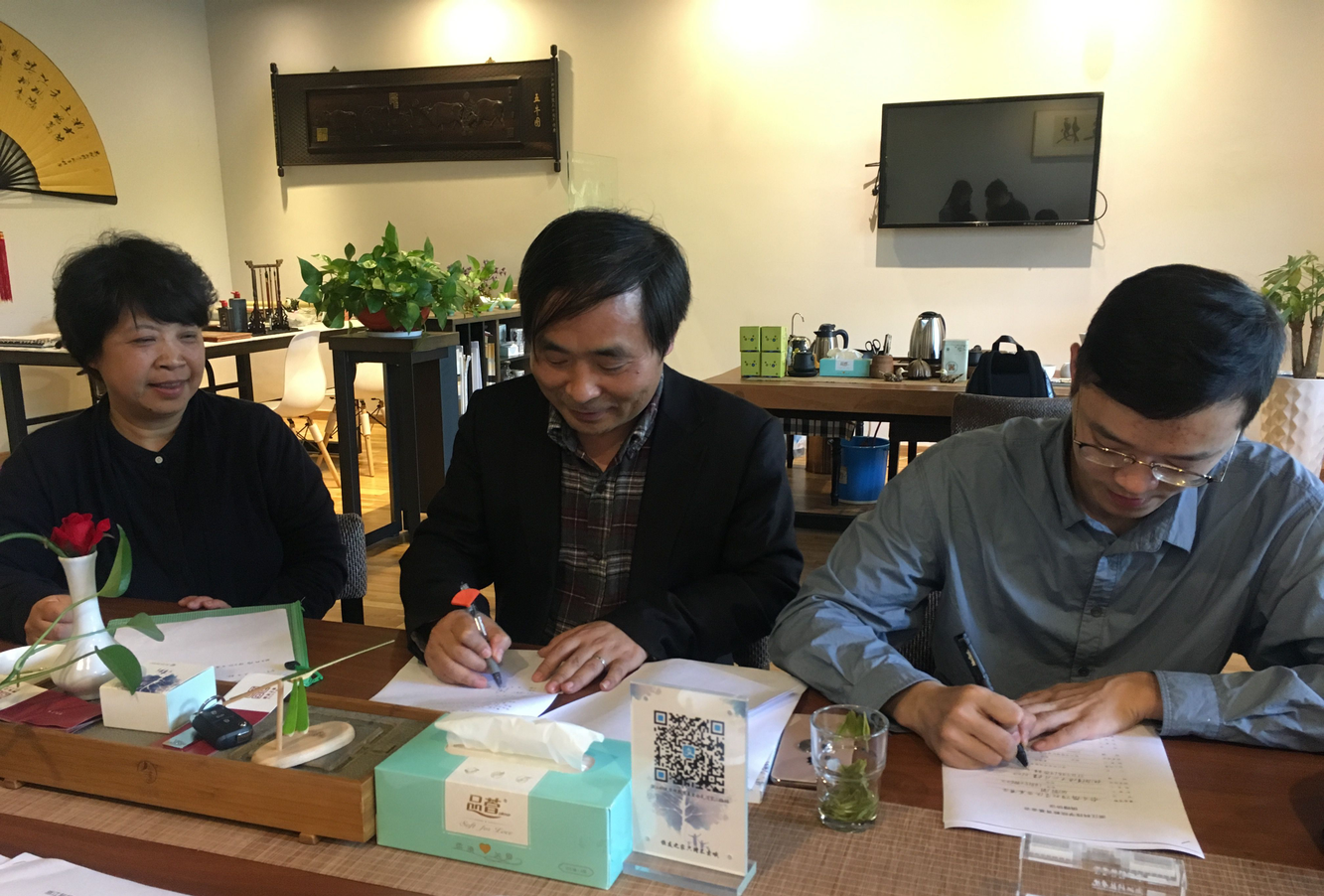 院长/党委书记陶祥兴、校友办主任王曦与校友签署捐赠协议。学院原党委书记苗红亚、党委副书记王宝明等参加签约仪式。
