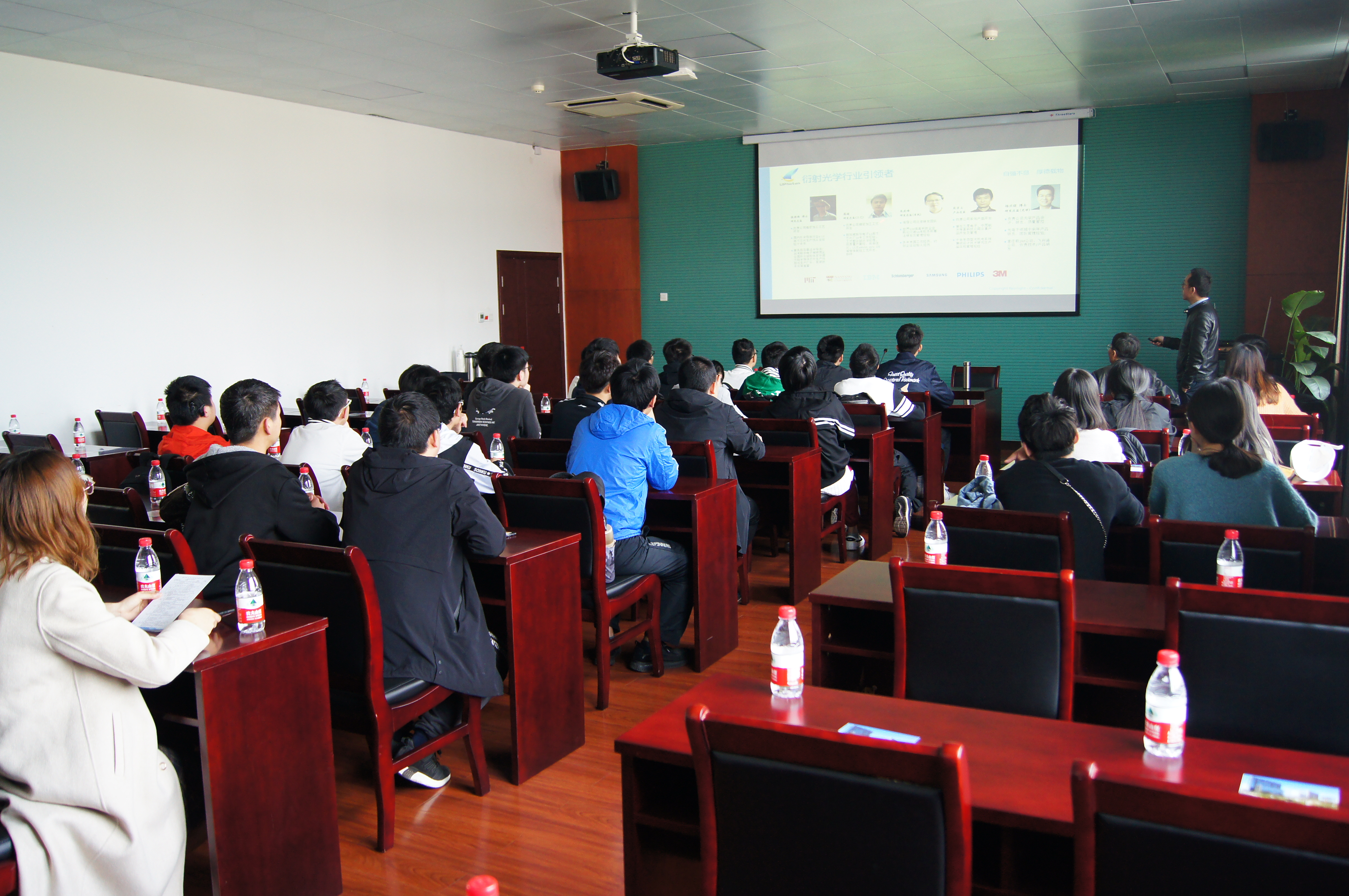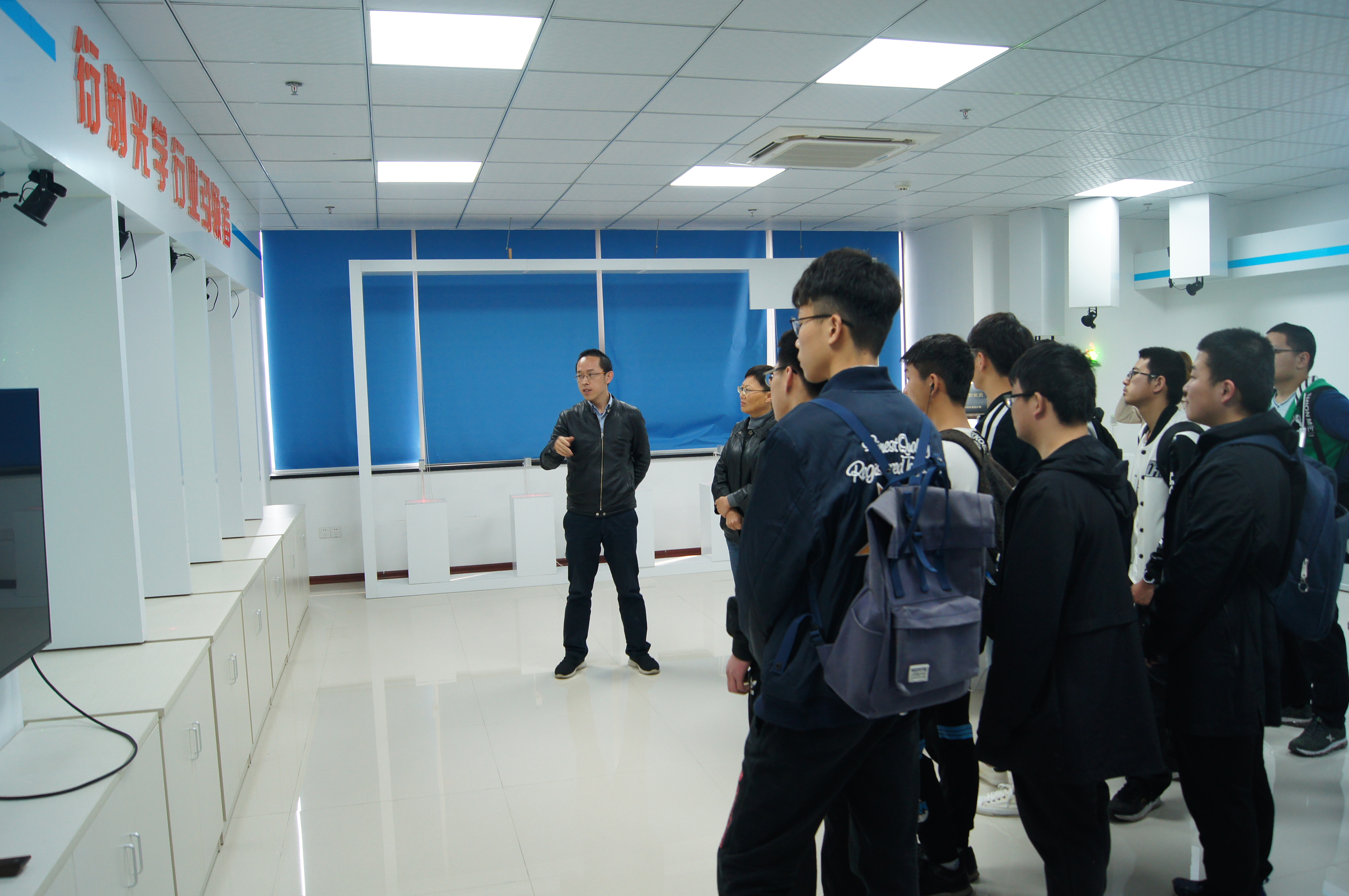 师生的到来表示热烈的欢迎,在简单介绍了公司情况后,双方进行了学院“实习实践基地”授牌仪式。接着,公司研发总监张国伟博士带领大家参观了“衍射光学行业的引领者”展览室,系统介绍了公司的主力产品,同学们兴致昂扬地进行提问,张博士一一解答。随后,师生分批参观车间,了解了公司生产的主要流程。最后,张博士系统介绍了公司核心技术、主要业务范围和发展历程。同时鼓励同学们通过努力拼搏学好专业,并欢迎同学们到公司实习、就业。