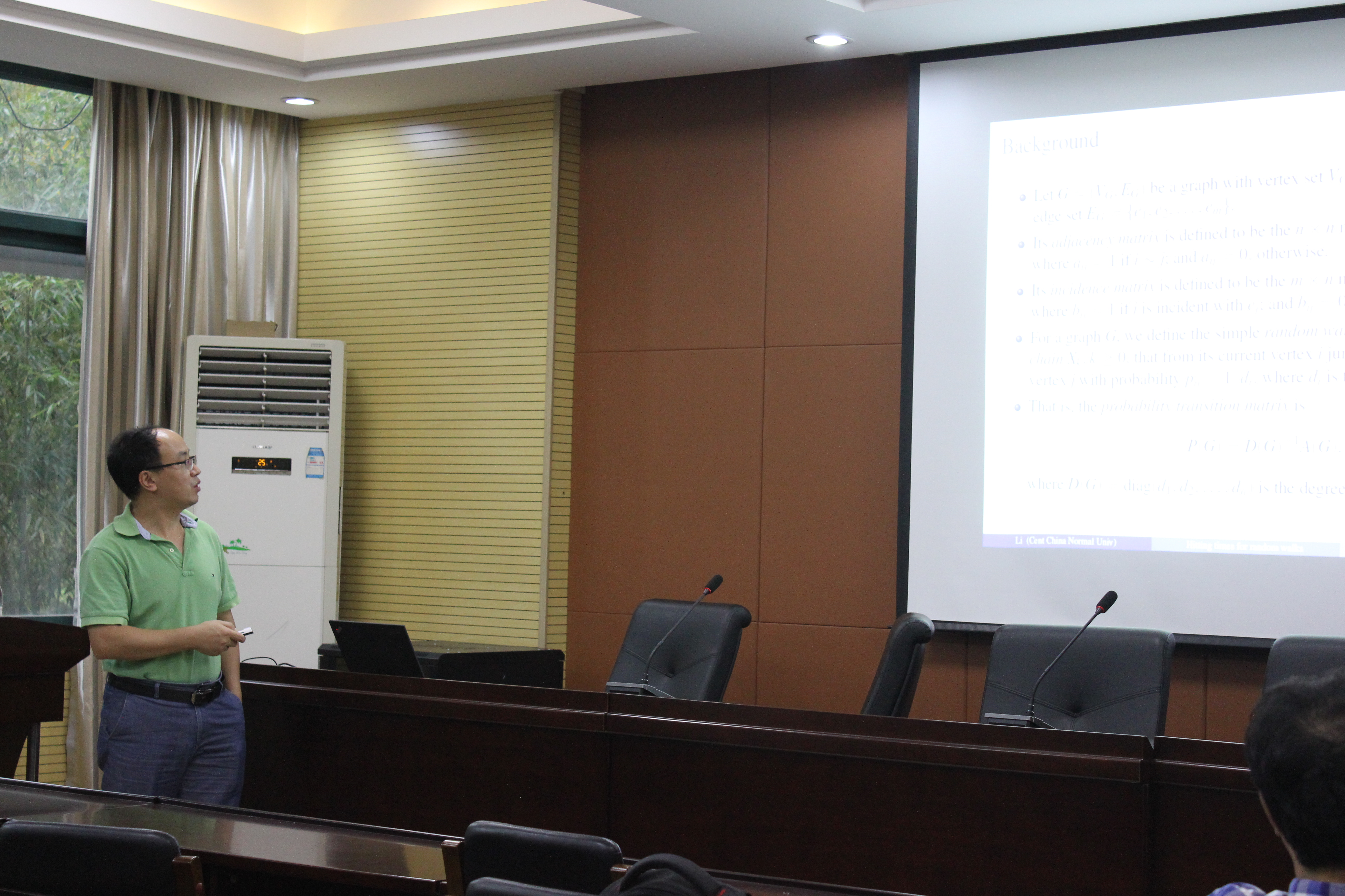 和山数学论坛136-138期,分别做了题为“Sharp bounds for spectral radius of nonnegative matrices”、“On the least signless Laplacian eigenvalue of a non-bipartite connected graph with fixed maximum degree”、“ Expected hitting times for random walks on quadrilateral graphs and their applications”的学术报告。报告由吃瓜黑料网