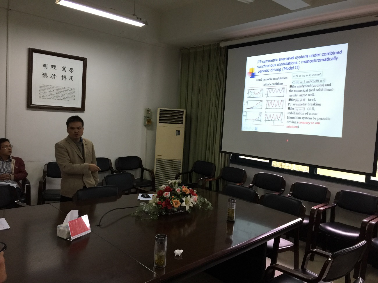 报告中, 罗小兵教授介绍了周期外场驱动(Floquet)系统中的一些新奇量子态和量子现象,并介绍了这些量子现象在光波导耦合器中的应用。最后,罗小兵教授也简单介绍下他们所预言的几个量子现象在实验中的验证和实。
