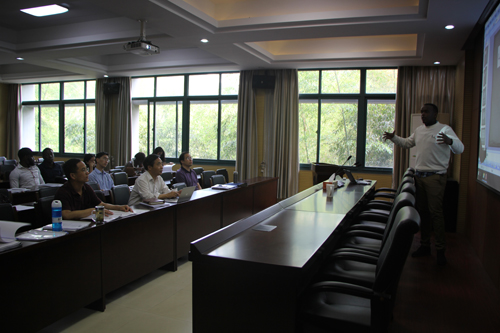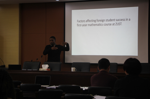 在A4-218举办了2017届(首届)信计国际班毕业论文答辩会。本次答辩委员会委员由院长陶祥兴教授、李先义教授、院长助理章迪平副教授、胡月副教授、王伟博士、吴淑慧博士、殷炜栋博士组成。参与答辩的是来自尼泊尔、印度尼西亚、津巴布韦、赞比亚、刚果等国家的10 位国际留学生。