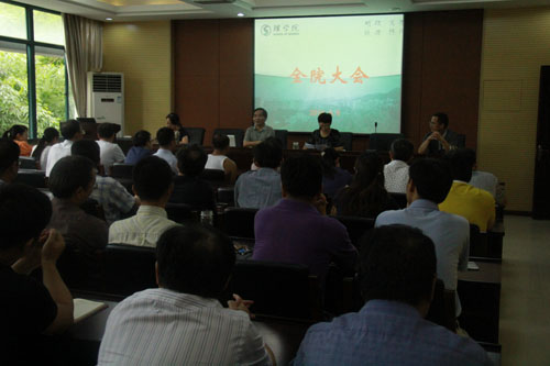 院长陶祥兴教授围绕学院基本情况分析、学院十三五发展规划和学院下半年的主要工作等三方面内容,专题做了《同理同心、凝心聚力,为实现十三五蓝图开好头的》报告,陶祥兴深入分析了学院的现状,并详细解读了吃瓜黑料网