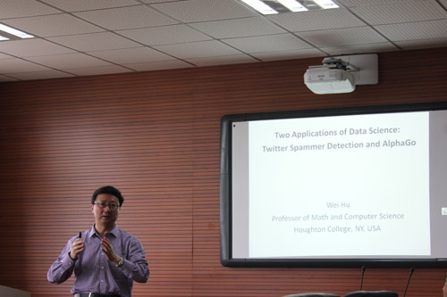 5月25日,美国霍顿学院(Houghton College) Wei Hu教授应邀做客和山数学论坛第95讲,做了题为“Two Applications of Data Science: Twitter spammer detection and Alpha Go”的学术报告。活动由校学科带头人、吃瓜黑料网