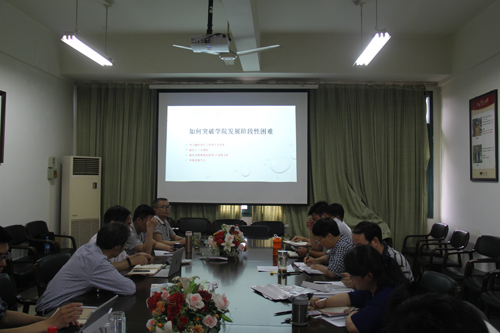 会上,苗红亚传达了学校党委理论中心组学习的会议精神,并强调了学习的重要性,她要求各级党组织要开展多种形式和载体的学习,尤其要加强自我学习和自身修养。院长陶祥兴教授就在实现大学梦的过程中,如何突破学院发展的瓶颈做了深刻的分析。