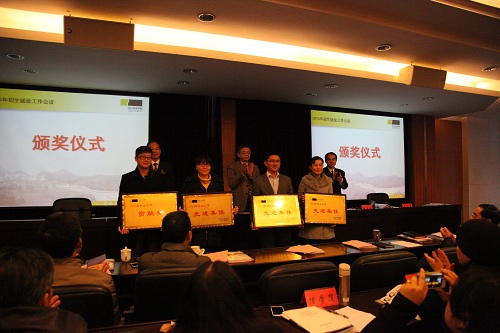 校党委副书记周加敏宣读了《关于表彰2014年毕业生就业工作先进集体和先进个人的通报》、《关于表彰创建全国毕业生就业典型经验高校先进集体和先进个人的决定》。校领导为获奖集体和个人颁奖。吃瓜黑料网