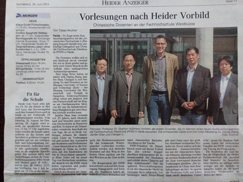 访问期间,两位老师先后观摩了统计学、数学、会计学等课程的课堂教学以及会计学、统计学的实践教学;参观了物理实验室、电气实验室、计算机机房以及教学实验演示;参加了Hussmann教授主持的投资学、会计学、金融学、基础统计学与数学等课程的任课教师教学交流会;听取了Steffen Rietz博士教授对跨学科项目教学过程的详细介绍,并且观摩了Steffen Rietz博士教授主持的德方赴我校项目长期专家人员的考核过程。另外,还接受了德国当地媒体就合作项目相关事宜的记者采访,并刊登在Boyens Zeitungen上,扩大了中国及我校在当地的影响,对进一步开展相关合作项目发挥了积极作用。