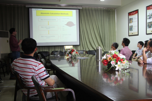 2014年9月24日下午,中国科学院半导体研究所研究员、国家级知名专家骆军委应邀作客习得学术论坛第140期暨格致论坛第25讲,为物理系师生做了题为 “半导体低维系统的电子结构理论及其应用”的学术报告。讲座由物理系系主潘卫清主持,物理系部分教师和和学生聆听了报告。