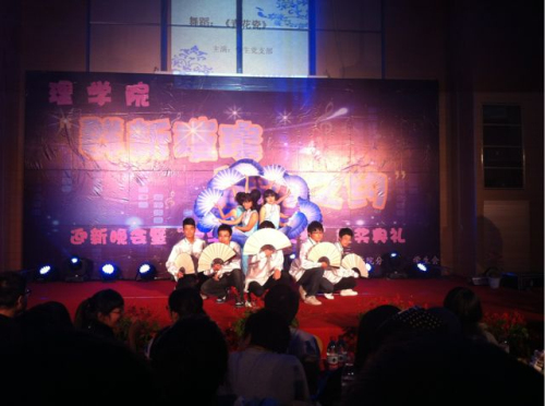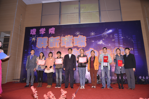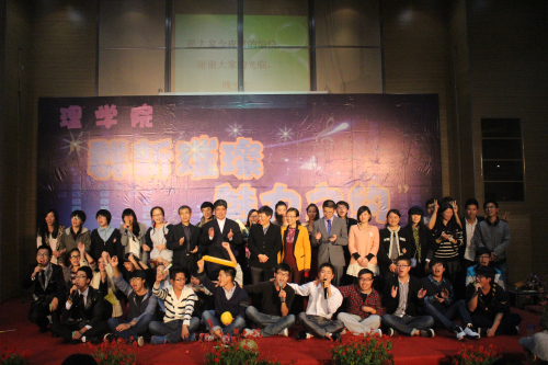 老师带来了第一个节目——歌曲《理学欢迎你》,歌声表达了全院师生的心意,也表达了老师们的祝福。学生党支部表演的舞蹈《青花瓷》传统而大气、信计132班的舞蹈《I’m your man》现代而活泼、信计133班的搞笑话剧《鸿门宴》等精彩节目赢得了全场的欢呼和掌声。辅导员王杨老师与学生吴雨辰合唱的《无与伦比的美丽》更是让在场观众为之疯狂,最后全场师生合唱《相亲相爱》将晚会气氛带入高潮,在观众经久不息的掌声中,晚会完美的落下帷幕。