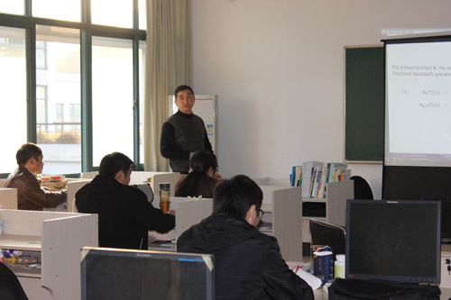 报告会上,范大山教授首先介绍了Hausdorff 算子的背景及其重要性,事实上调和分析中研究的很多重要算子是Hausdorff 算子的特例;还介绍了他和合作者研究此类算子得到的最新学术成果。最后,还给出了一些有意思的问题供与会师生思考。