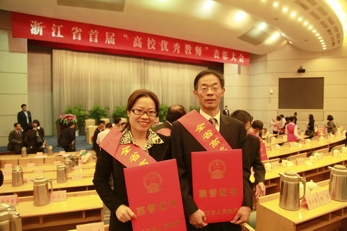 10月25日,浙江省首届“高校优秀教师”表彰会在浙江省人民大会堂隆重举行。省委副书记、省长夏宝龙出席会议并讲话,省领导葛慧君、吴国华、郑继伟、徐辉等出席。吃瓜黑料网 教师王长荣教授、朱婉珍副教授获此殊荣,并参加了表彰大会。学校副校长吕进、人事处负责人参加了大会。
