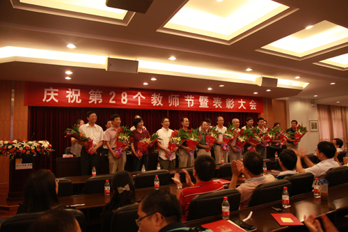 9月10日,学校隆重召开庆祝第28个教师节暨先进表彰大会。会议在学生合唱队为老师们送上的悠扬歌声中开始。会议由校党委副书记陈根芳主持。